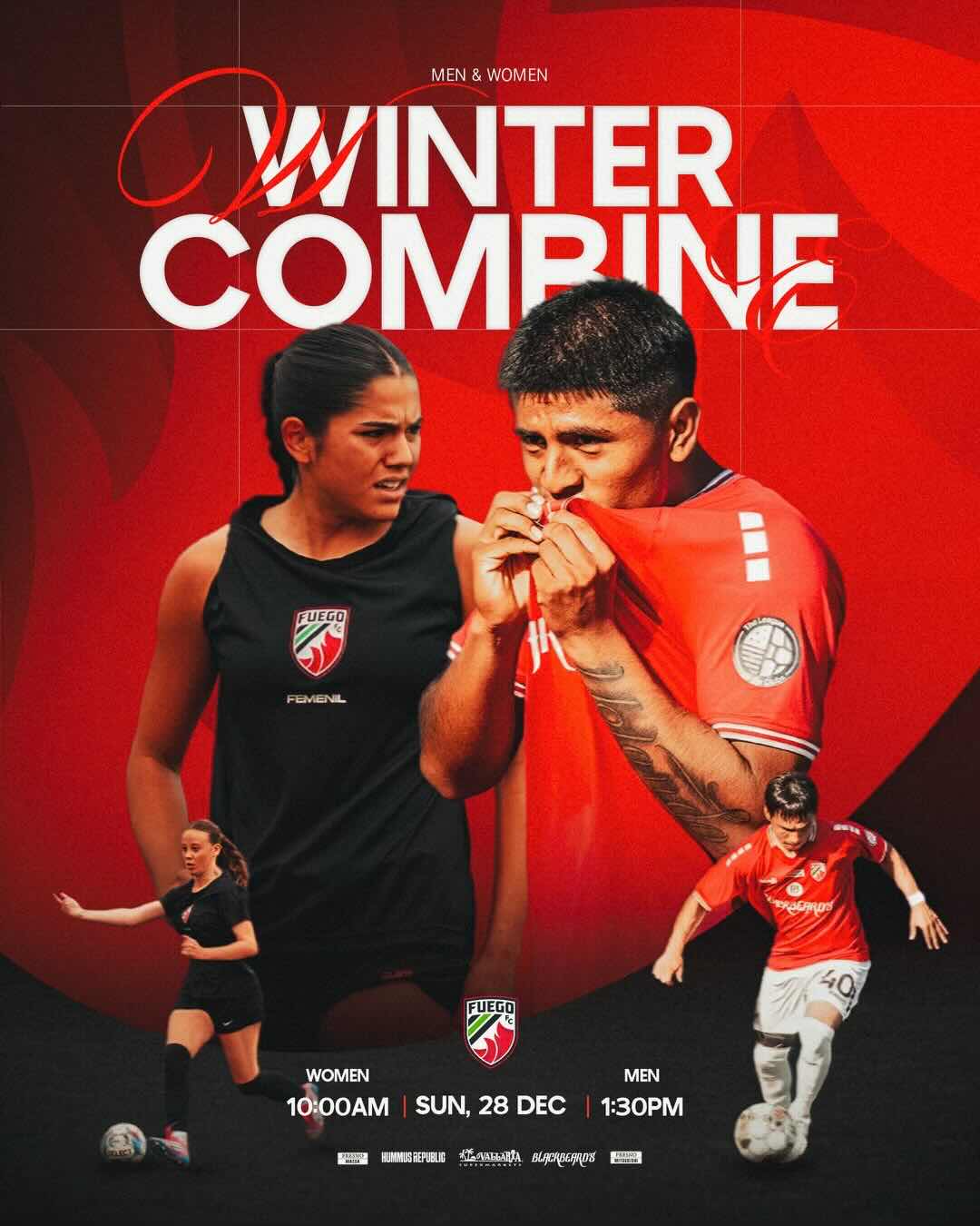 FRESNO, CALIFORNIA — Central Valley Fuego FC has officially announced its Winter Combine, a one-day talent identification event designed to evaluate and identify top local and regional players for the club’s Men’s U23 and U19 teams, as well as Fuego Femenil and Femenil U19 programs.\n\n The Winter Combine will take place on Sunday, December 28, and will serve as a critical evaluation opportunity for players aspiring to compete within the Fuego FC pathway. The event reinforces the club’s ongoing commitment to developing high-level talent and providing clear opportunities for advancement at both the men’s and women’s levels.\n\n The Women’s Combine will begin at 10:00 a.m., followed by the Men’s Combine at 1:30 p.m. Both sessions will be staffed by Fuego FC technical leadership, coaching staff, and evaluators responsible for roster construction across Senior, U23, and U19 levels.\n\n Players will be assessed on technical ability, tactical awareness, physical readiness, and overall game understanding within a competitive environment. Outstanding performers may be invited into Fuego FC training environments, extended evaluations, or future roster consideration for the upcoming competitive cycle.\n\n “This combine is about identifying players who fit the Fuego standard,” said a Brian Easler. “We are focused on building strong U23 and U19 teams for both our men’s and women’s programs, and this is a key step in that process.”\n\n The Winter Combine is open to eligible players seeking placement within a structured, competitive pathway that prioritizes development, exposure, and progression within the Fuego FC system.\n\n Additional details regarding registration, location, and eligibility will be released directly by the club to those players who sign up at the link below.\n\n For updates and official announcements, follow Central Valley Fuego FC on social media or visit fuegofc.com.